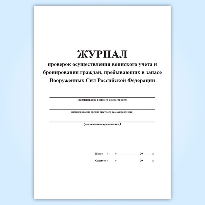 Журнал проверок осуществления воинского учета и бронирования граждан, пребывающих в запасе Вооруженных Сил Российской Федерации в Нижнекамске купить