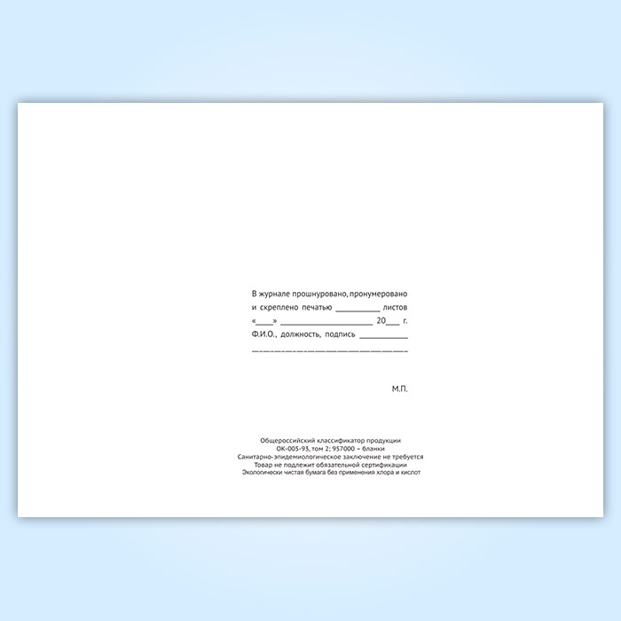 Вы получаете печатную продукцию прошнурованной и c местом для вашей печати в соответствии с действующими нормативными документами: