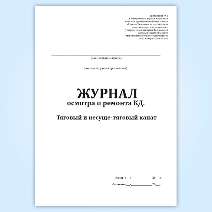 Журнал осмотра и ремонта канатной дороги. Тяговый и несуще-тяговый канат (форма № 2) в Нижнекамске купить