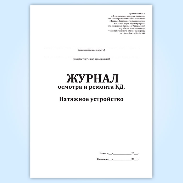 Журнал осмотра и ремонта канатной дороги. Натяжное устройство (форма № 5) в Нижнекамске купить