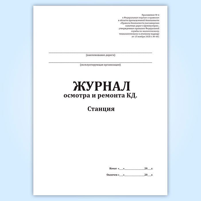 Журнал осмотра и ремонта канатной дороги. Станция (форма № 7) в Нижнекамске купить