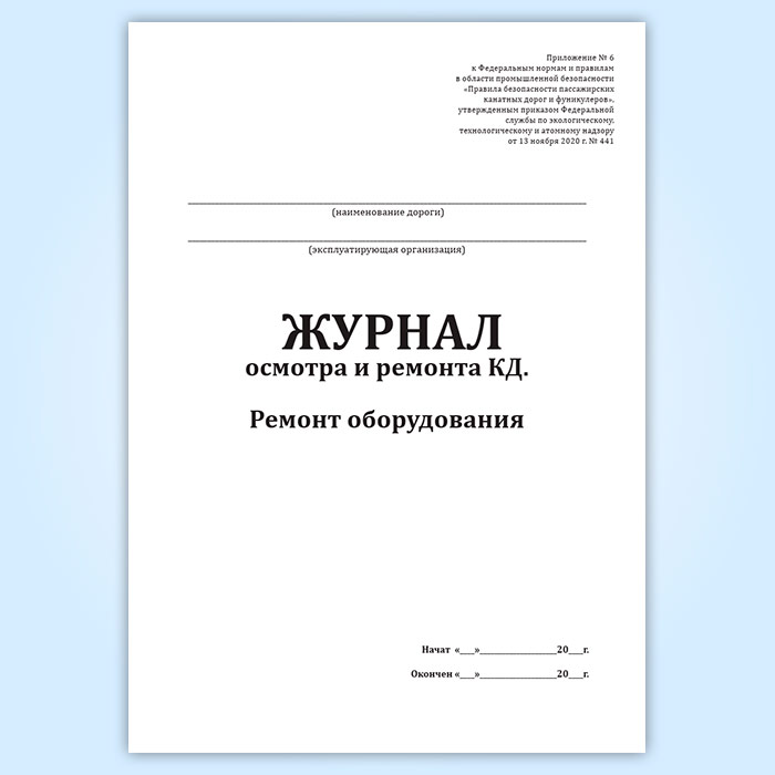 Журнал осмотра и ремонта канатной дороги. Ремонт оборудования (форма № 10) в Нижнекамске купить