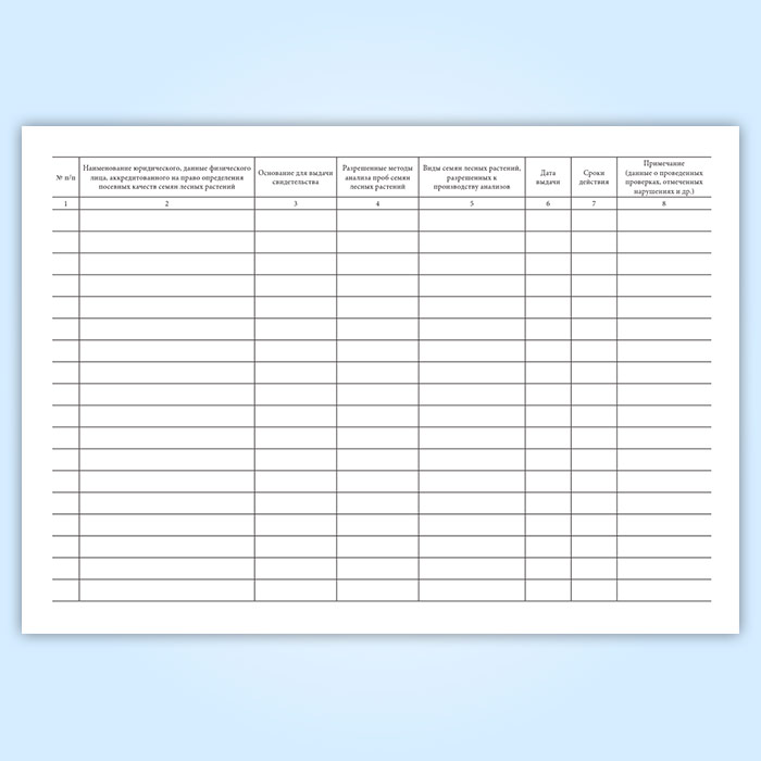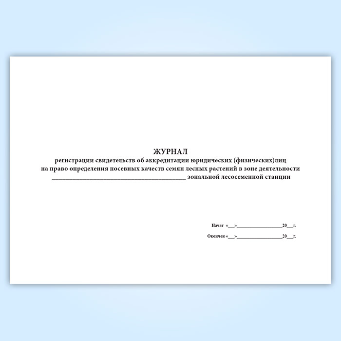 Журнал регистрации свидетельств об аккредитации юридических (физических) лиц на право определения посевных качеств семян лесных растений в зоне деятельности зональной лесосеменной станции в Нижнекамске купить