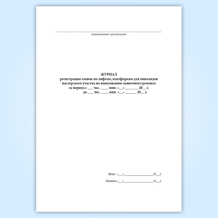 Журнал регистрации заявок по лифтам, платформам для инвалидов мастерского участка по выполнению заявочного ремонта в Нижнекамске купить