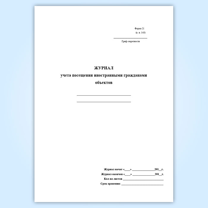 Журнал учета посещения иностранными гражданами объектов (форма 21) в Нижнекамске купить