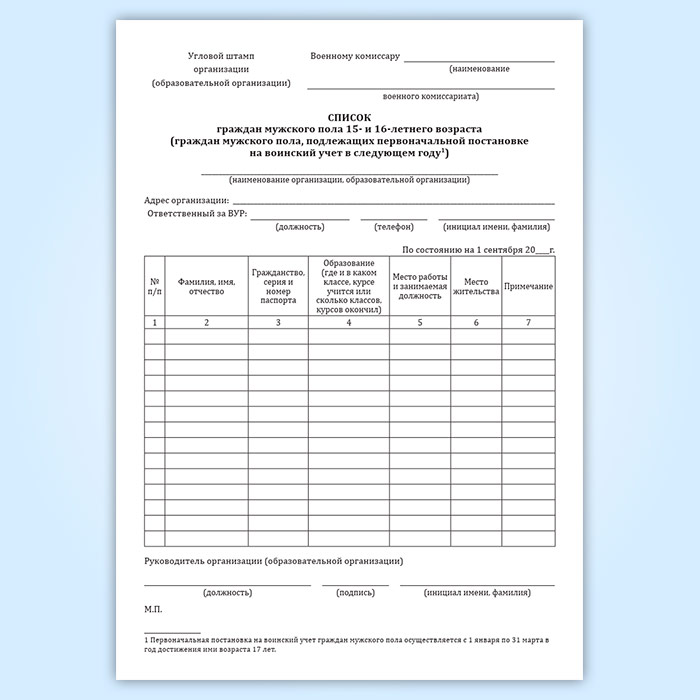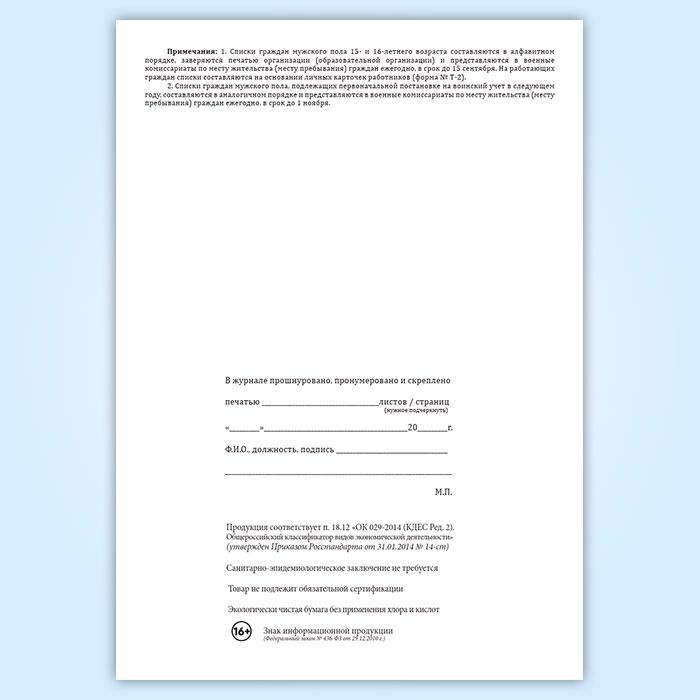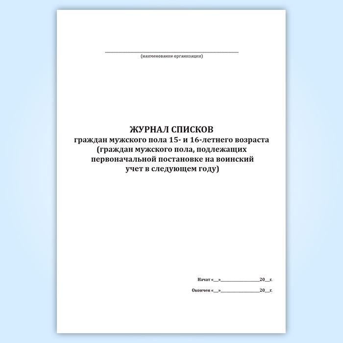 Журнал списков граждан мужского пола 15- и 16-летнего возраста (граждан мужского пола, подлежащих первоначальной постановке на воинский учет в следующем году) в Нижнекамске купить
