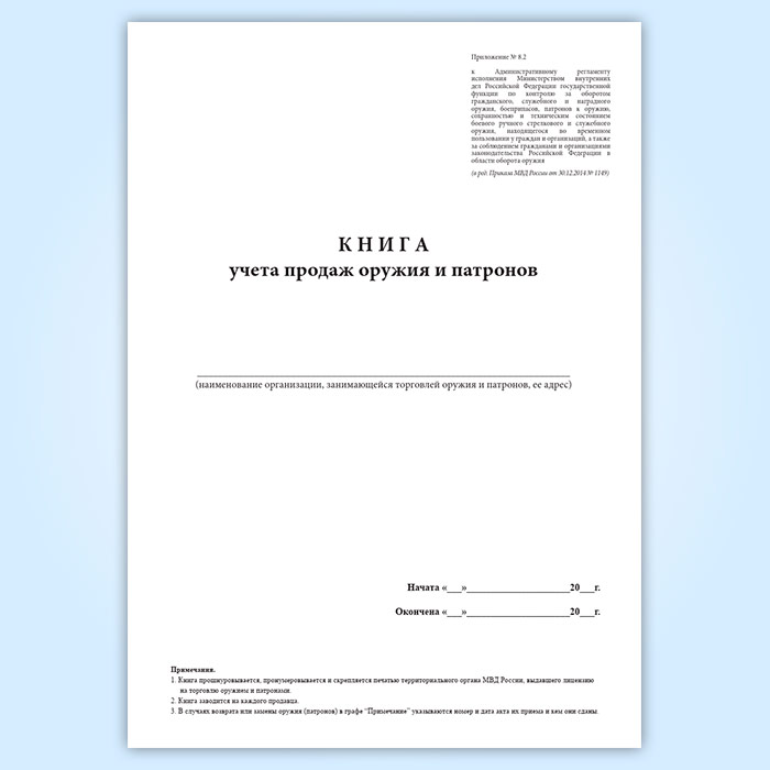 Книга учета продаж оружия и патронов (Приказ МВД России от 29.06.2012 N 646) в Нижнекамске купить