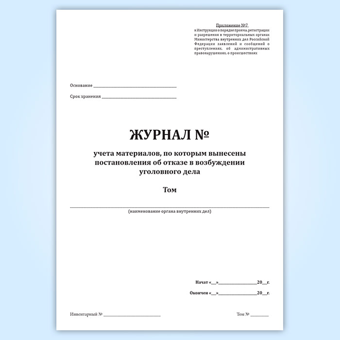 Журнал учета материалов, по которым вынесены постановления об отказе в возбуждении уголовного дела в Нижнекамске купить