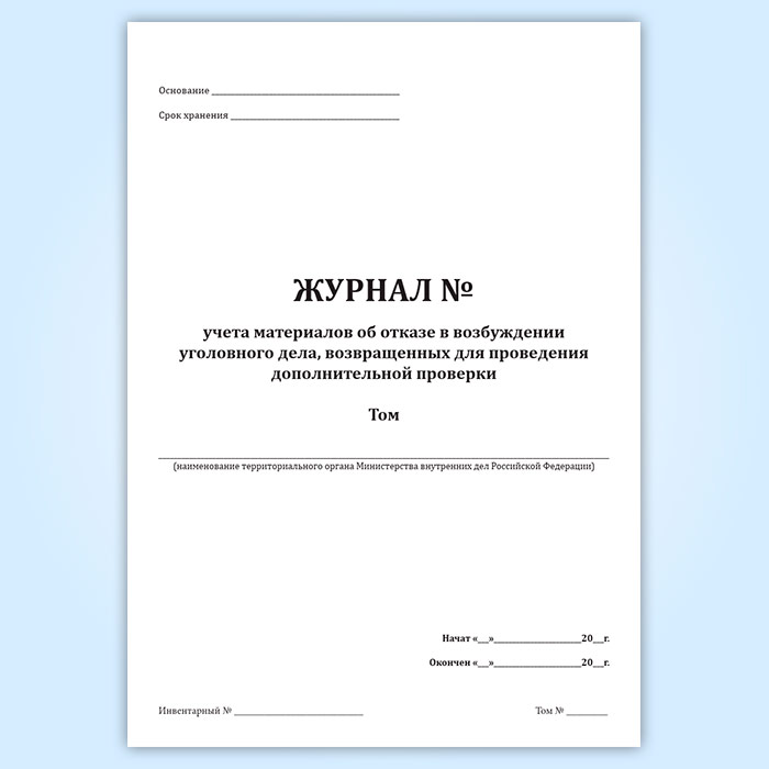 Журнал учета материалов об отказе в возбуждении уголовного дела, возвращенных для проведения дополнительной проверки в Нижнекамске купить
