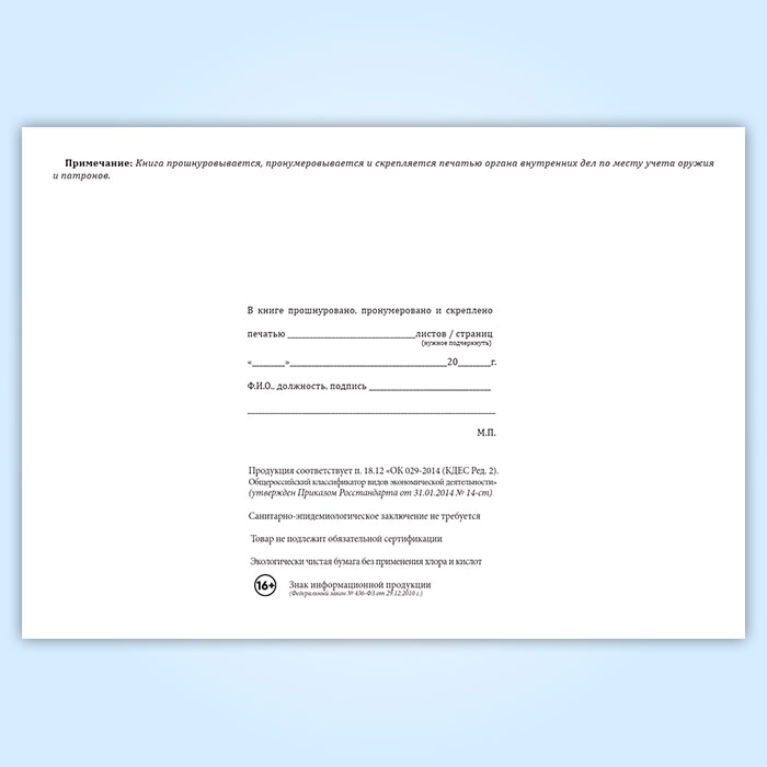 Книга номерного учета и персонального закрепления оружия и патронов в Нижнекамске купить