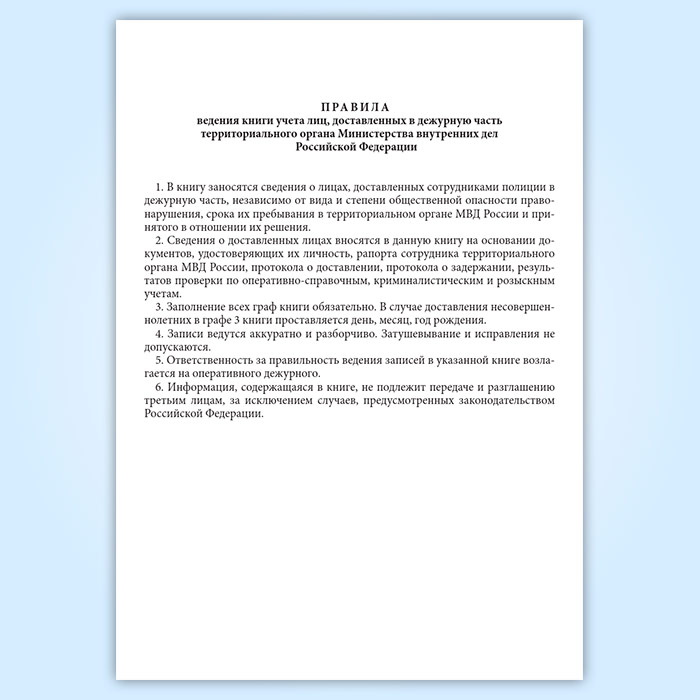 Книга учета лиц, доставленных в дежурную часть территориального органа МВД РФ в Нижнекамске купить