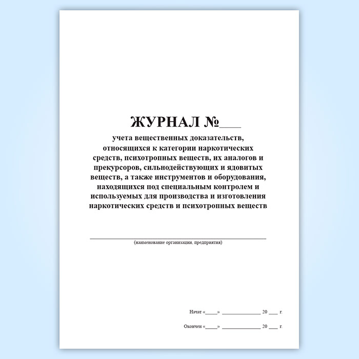 Журнал учета вещественных доказательств, относящихся к категории наркотических средств, психотропных веществ, их аналогов и прекурсоров, сильнодействующих и ядовитых веществ, а также инструментов и оборудования, находящихся под специальным контролем и используемых для производства и изготовления наркотических средств и психотропных веществ в Нижнекамске купить