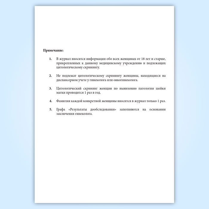 Журнал учета цитологического скрининга женщин по выявлению патологии шейки матки в Нижнекамске купить