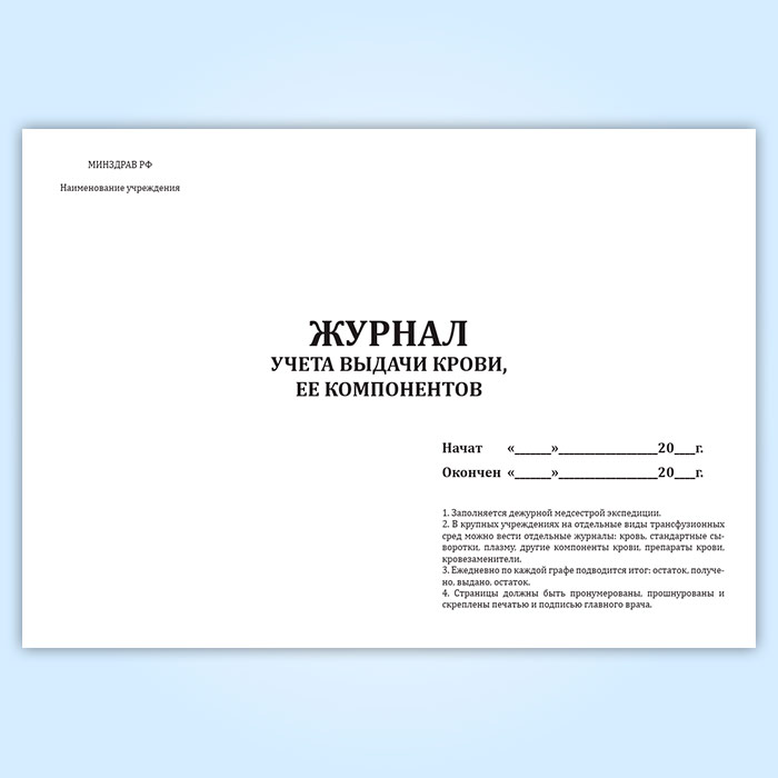 Журнал учета выдачи крови, ее компонентов в Нижнекамске купить