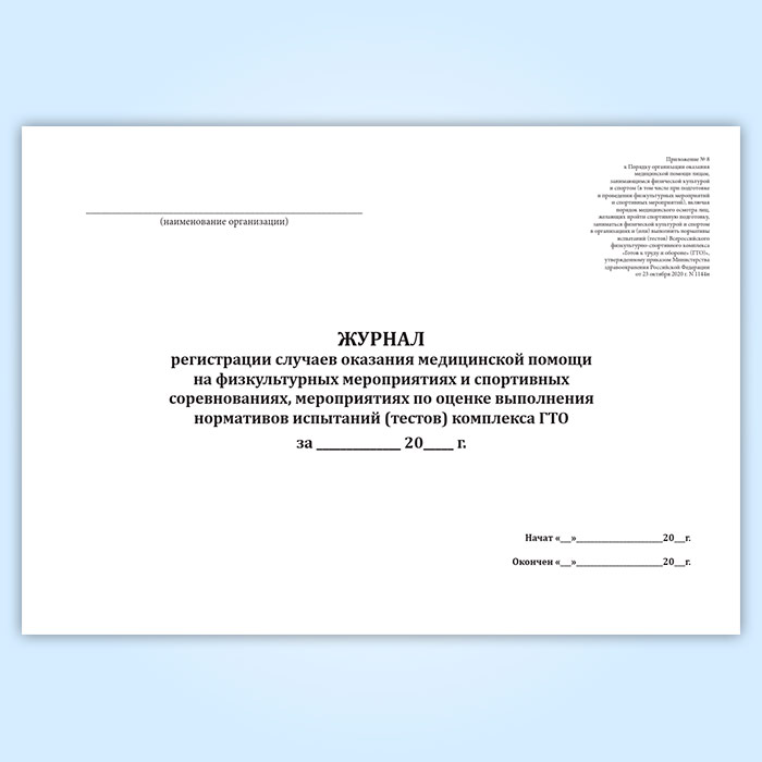 Журнал регистрации случаев оказания медицинской помощи на физкультурных мероприятиях и спортивных соревнованиях, мероприятиях по оценке выполнения нормативов испытаний (тестов) комплекса ГТО в Нижнекамске купить