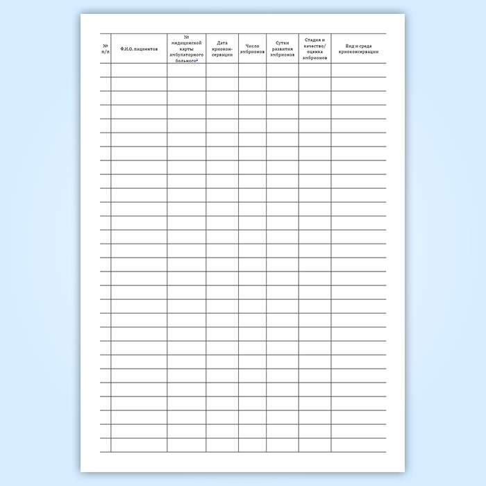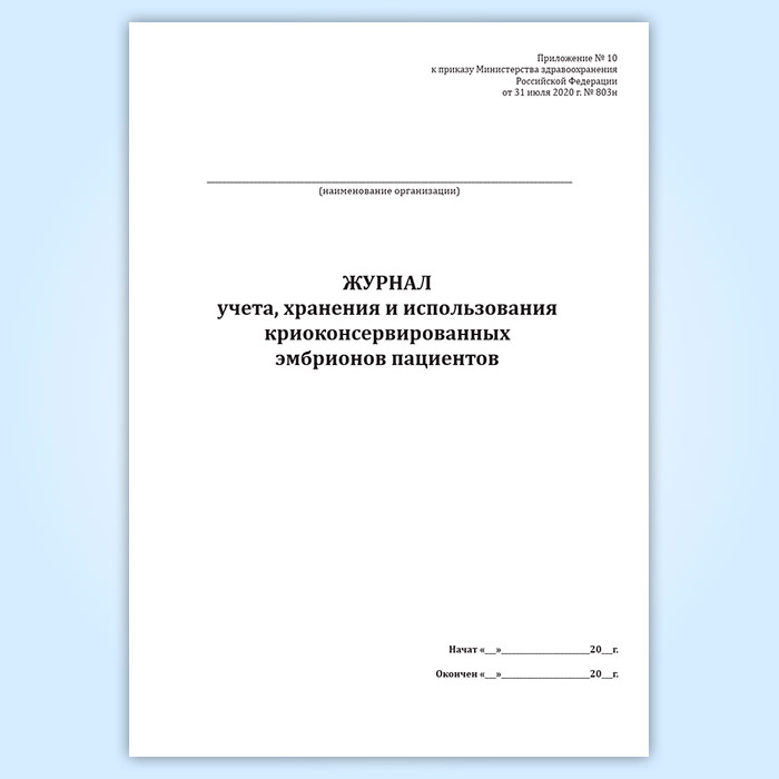 Журнал учета, хранения и использования криоконсервированных эмбрионов пациентов в Нижнекамске купить