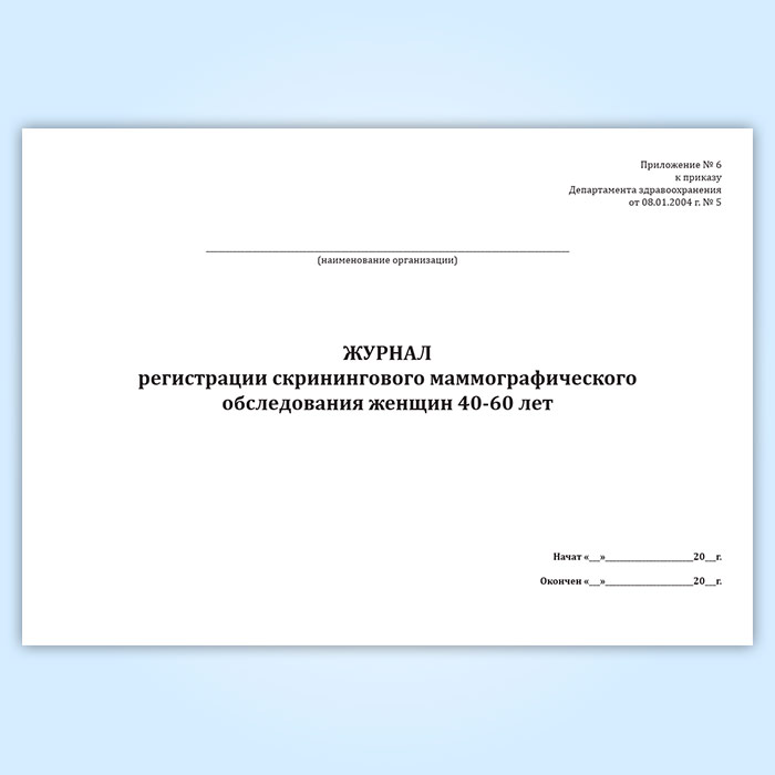 Журнал регистрации скринингового маммографического обследования женщин 40-60 лет в Нижнекамске купить