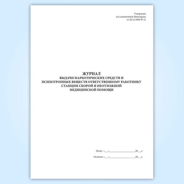 Журнал выдачи наркотических средств и психотропных веществ ответственному работнику станции скорой и неотложной медицинской помощи в Нижнекамске купить