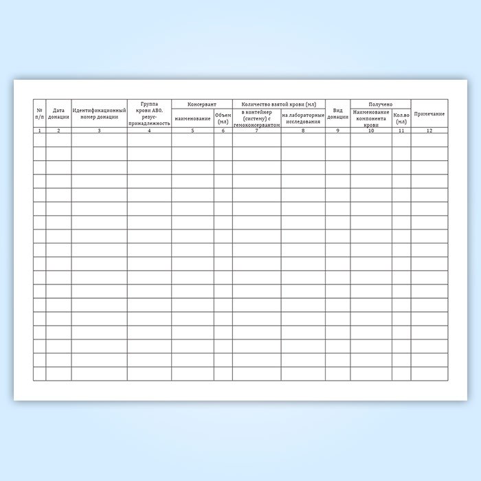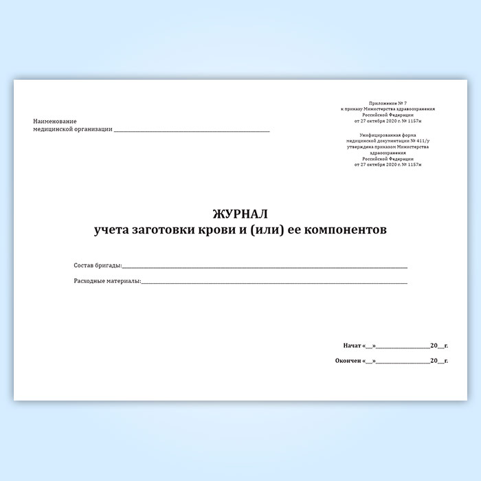 Журнал учета заготовки крови и (или) ее компонентов (форма № 411/у) в Нижнекамске купить