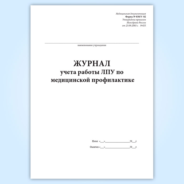 Журнал учета работы ЛПУ по медицинской профилактике (форма 038у-02) в Нижнекамске купить