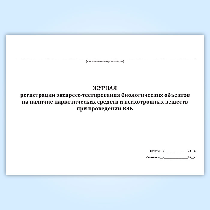 Журнал регистрации экспресс-тестирования биологических объектов на наличие наркотических средств и психотропных веществ при проведении ВЭК в Нижнекамске купить