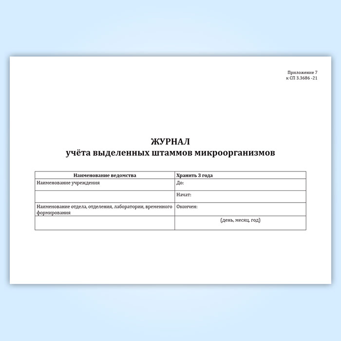 Журнал учета выделенных штаммов микроорганизмов (СанПиН 3.3686-21) в Нижнекамске купить