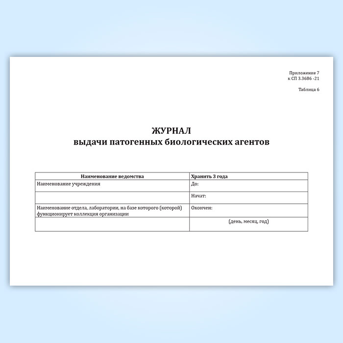 Журнал выдачи патогенных биологических агентов (СанПиН 3.3686-21) в Нижнекамске купить