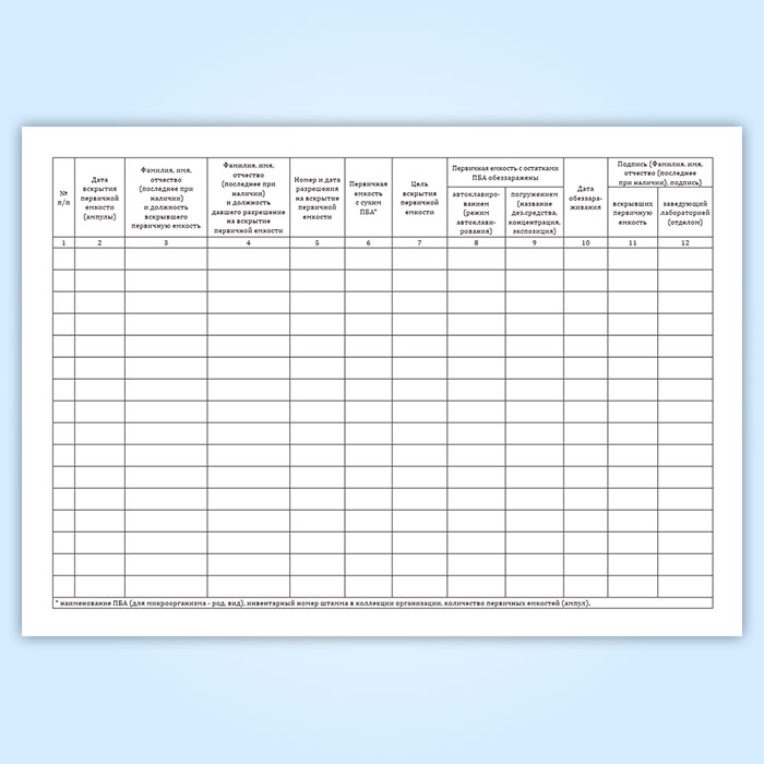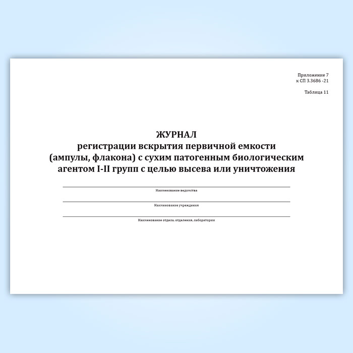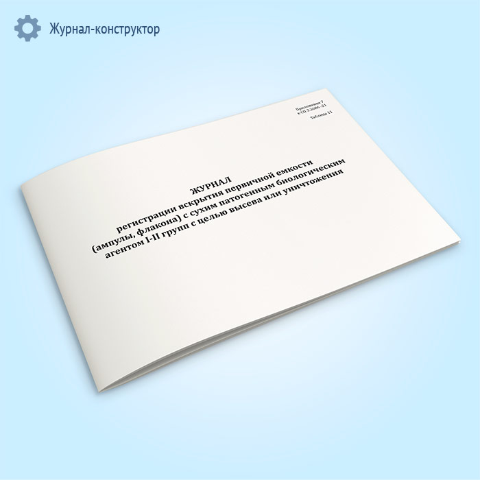 Журнал регистрации вскрытия первичной емкости (ампулы, флакона) с сухим патогенным биологическим агентов I-II групп с целью высева или уничтожения в Нижнекамске купить