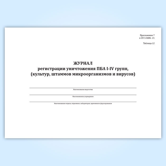 Журнал регистрации уничтожения ПБА I-IV групп, (культур, штаммов микроорганизмов и вирусов) в Нижнекамске купить