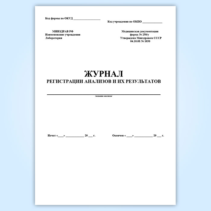 Журнал регистрации анализов и их результатов (форма 250/у) в Нижнекамске купить