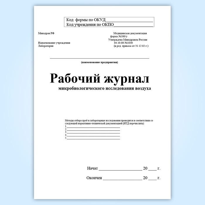 Рабочий журнал микробиологического исследования воздуха (форма 380/у) в Нижнекамске купить