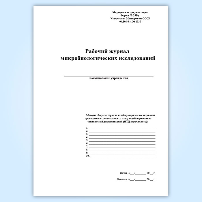 Рабочий журнал микробиологических исследований (форма 253/у) в Нижнекамске купить