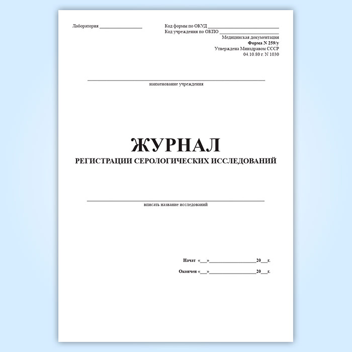 Журнал регистрации серологических исследований (форма 259/у) в Нижнекамске купить
