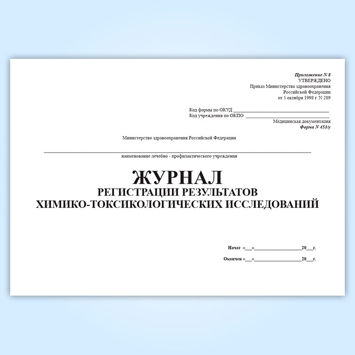 Журнал регистрации результатов химико-токсикологических исследований (форма 453у-06) в Нижнекамске купить