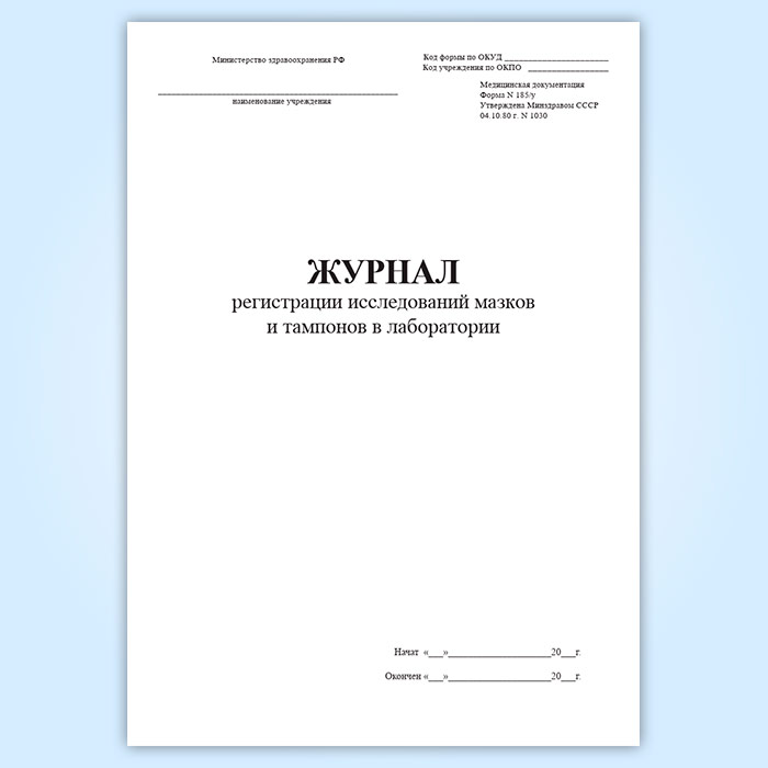 Журнал регистрации исследований мазков и тампонов в лаборатории (форма 185/у) в Нижнекамске купить
