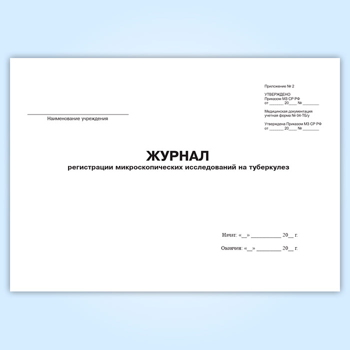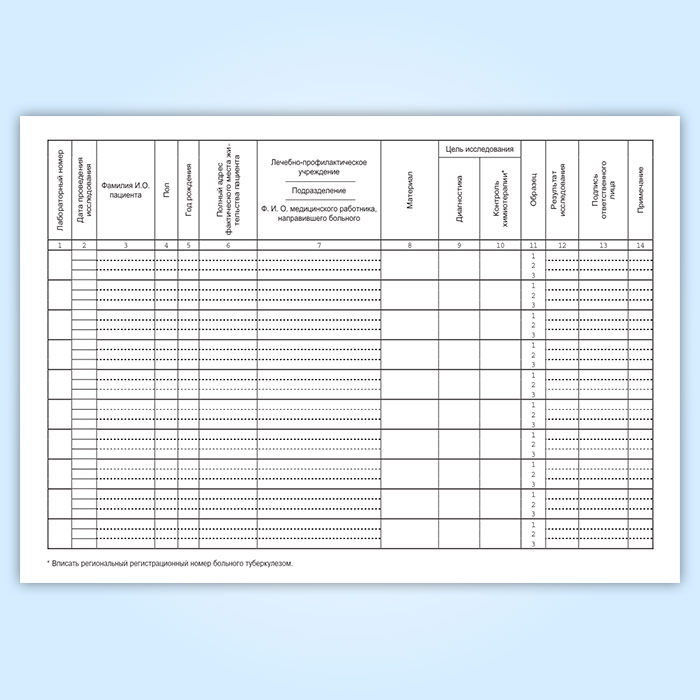 Журнал регистрации диагностического материала, собранного для микроскопических исследований на туберкулез (форма № 04-1-ТБ/у) в Нижнекамске купить