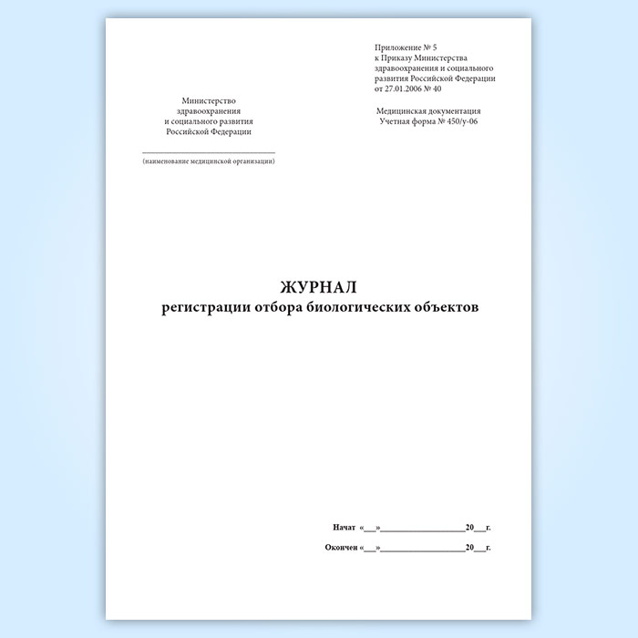 Журнал регистрации отбора биологических объектов (форма 450у-06) в Нижнекамске купить