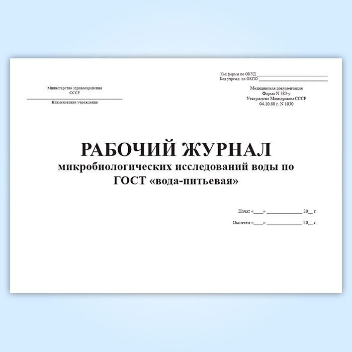 Рабочий журнал микробиологических исследований воды по ГОСТ вода-питьевая (форма 383/у) в Нижнекамске купить