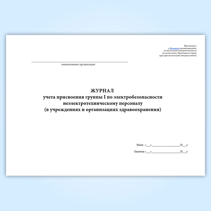 Журнал учета присвоения группы 1 по электробезопасности неэлектротехническому персоналу (в учреждениях и организациях здравоохранения) в Нижнекамске купить