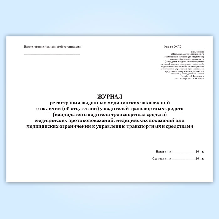 Журнал регистрации выданных медицинских заключений о наличии (об отсутствии) у водителей транспортных средств (кандидатов в водители транспортных средств) медицинских противопоказаний, медицинских показаний или медицинских ограничений к управлению транспортными средствами в Нижнекамске купить