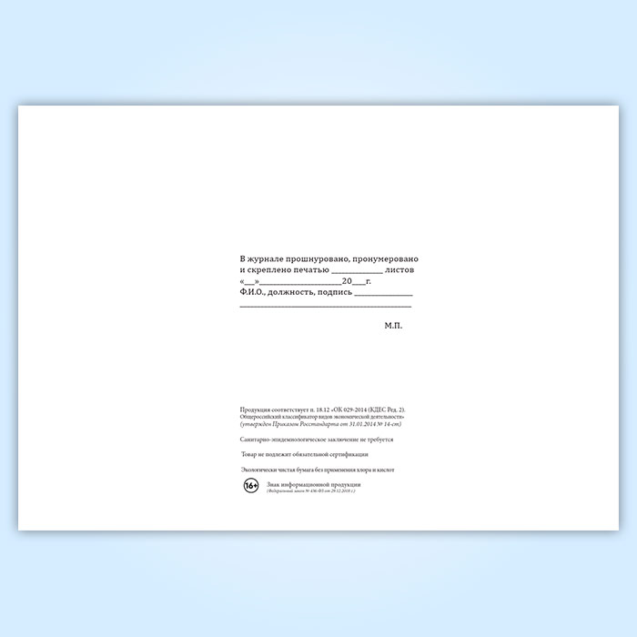 Вы получаете печатную продукцию прошнурованной и c местом для вашей печати в соответствии с действующими нормативными документами: