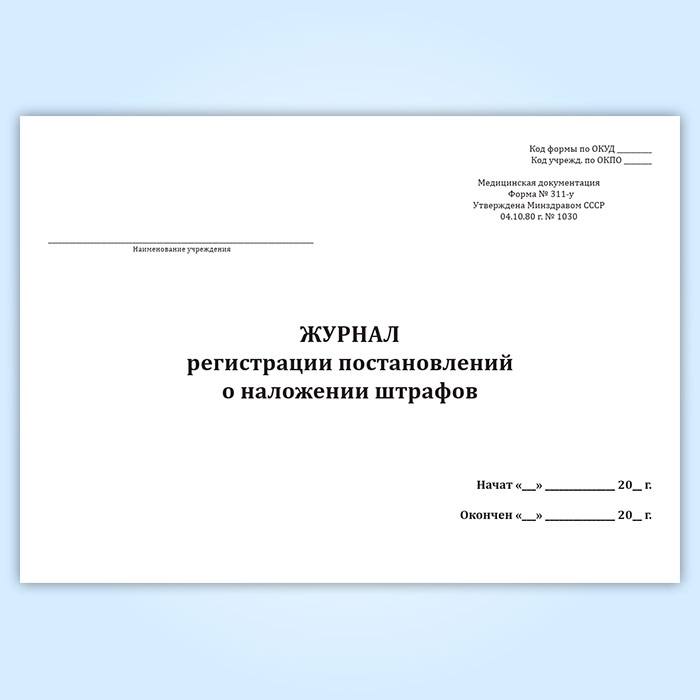Журнал регистрации постановлений о наложении штрафов (форма 311-у) в Нижнекамске купить