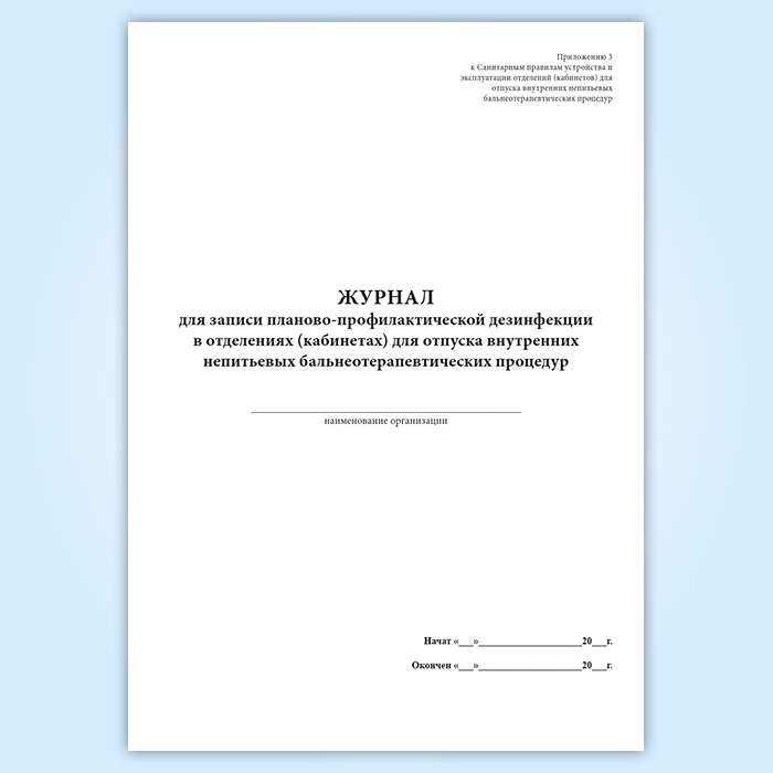 Журнал для записи планово-профилактической дезинфекции в отделениях (кабинетах) для отпуска внутренних непитьевых бальнеотерапевтических процедур в Нижнекамске купить
