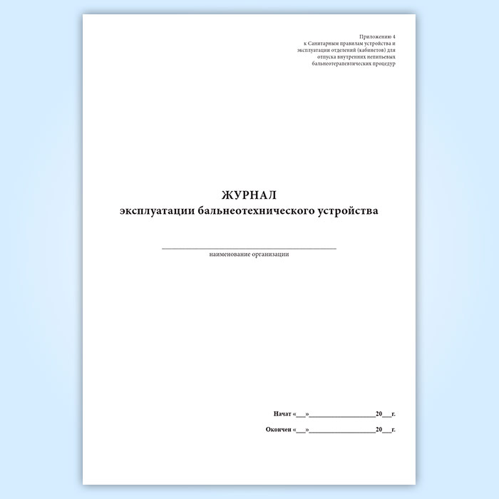 Журнал эксплуатации бальнеотехнического устройства в Нижнекамске купить