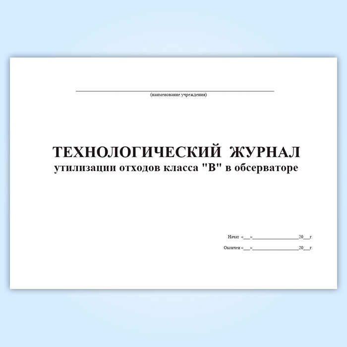 Технологический журнал утилизации отходов класса «В» в обсерваторе в Нижнекамске купить