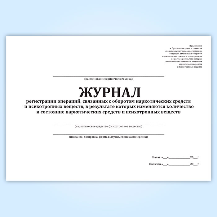 Журнал регистрации операций, связанных с оборотом наркотических средств и психотропных веществ, в результате которых изменяются количество и состояние наркотических средств и психотропных веществ в Нижнекамске купить
