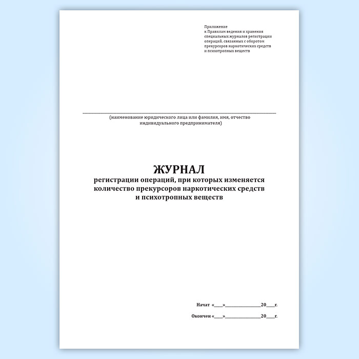Журнал регистрации операций, при которых изменяется количество прекурсоров наркотических средств и психотропных веществ в Нижнекамске купить