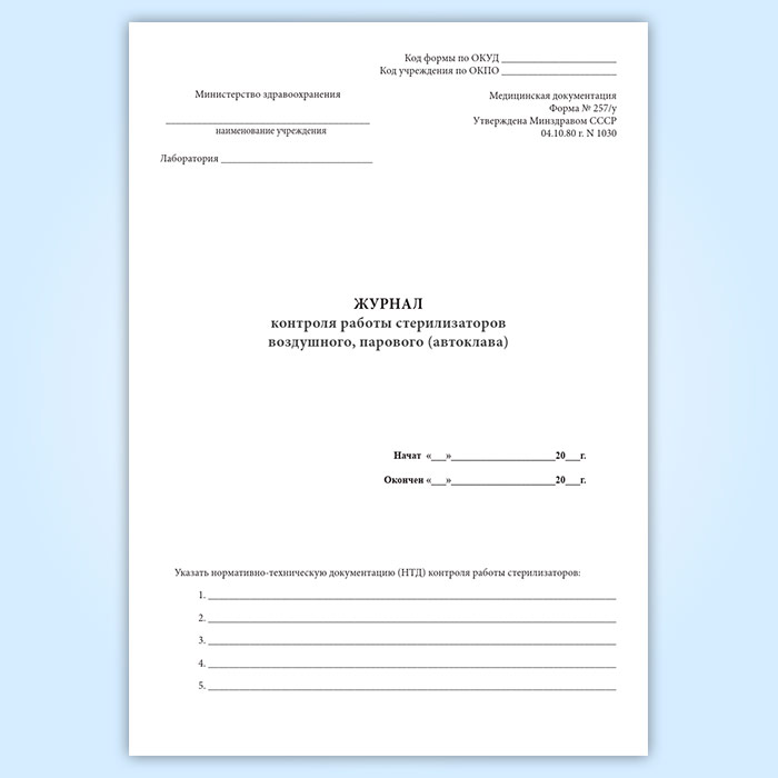 Журнал контроля работы стерилизаторов воздушного, парового (автоклава) (форма 257/у) в Нижнекамске купить