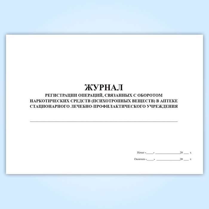 Журнал регистрации операций, связанных с оборотом наркотических средств и психотропных веществ в аптеке медицинской организации в Нижнекамске купить
