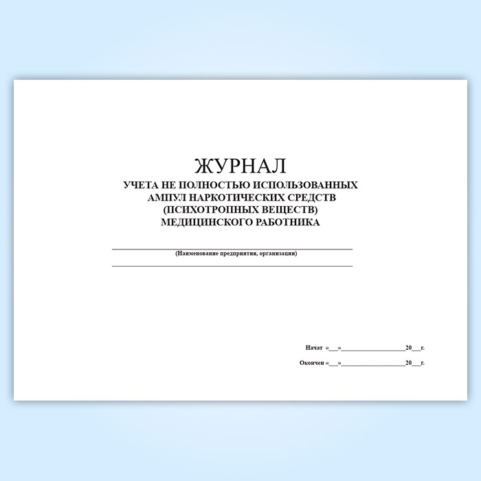 Журнал учета не полностью использованных ампул наркотических средств (психотропных веществ) медицинского работника в Нижнекамске купить